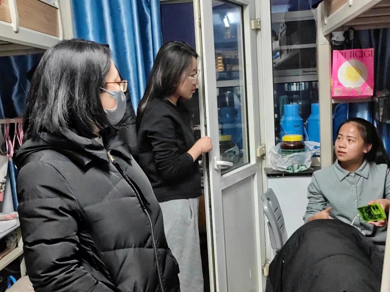 为强化学生宿舍管理工作,加强学生宿舍安全卫生教育和管理,形成常态化的运行机制,bat365党委副书记副院长陆一琼、学生工作与就业办公室主任包双成及各班班主任于2023年12月15日走访学生寝室。