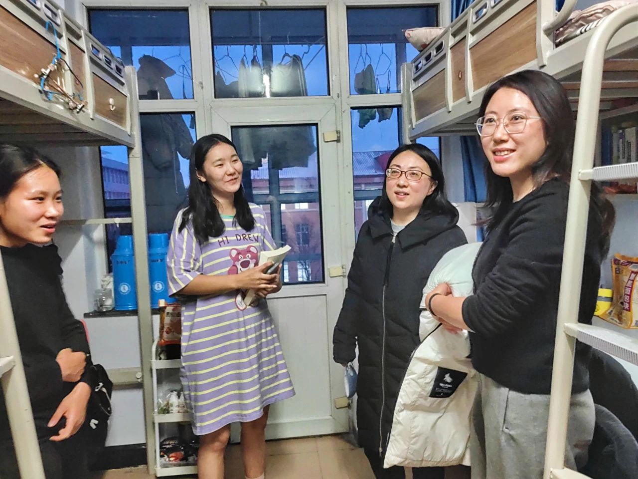 在走访的过程中,学院领导及班主任老师们与同学们进行了亲切的交流,了解同学们到校后的感受与印象,并为同学们回答了一些在生活中和学习上的问题。老师们勉励大家在生活中要团结友爱,在学习中要互帮互助,养成良好的习惯,珍惜大学时光,树立远大理想,掌握学业知识,并且预祝同学们在期末考试和四六级考试中可以取得优异成绩。