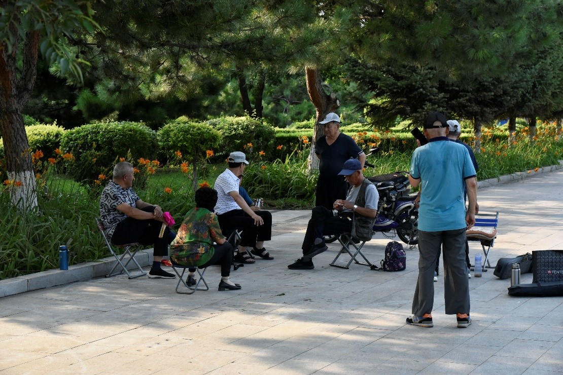 在甘旗卡公园社区内的居民热情向团队介绍该社区内的基本情况,在姜鑫老师的带领下,队伍中的同学与当地居民进行友好交流,认真负责地倾听与记录受访者诉说的社区状况和个人想法。