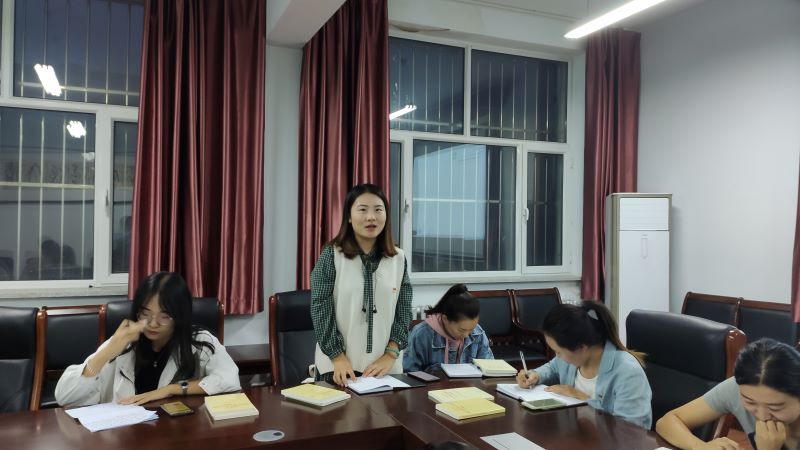 研究生二年级党小组代表李玉洁发言说:“肩扛政治担当,永怀赤子之心,作为学生党员,加强学习能力是我们的首要任务,不断增强自身的思想水平,要主动学习,全面学习,提高学习的深度与广度,认真学习两书一章,要逐字逐句读原著学原文捂原理,切忌形式主义,要合理安排自己的时间认真学习,认真贯彻落实。”