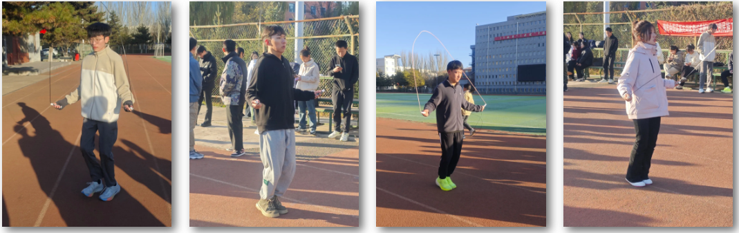 在团体赛中,各班级的同学们积极配合,凝聚一心。以无比的默契展示着班级积极向上、团结进取的风貌。伴着冬日的暖阳,跳绳在空气中划出一道道优美的弧线,如同彩虹般绚丽,连接着每一个轻快的跳跃。同学们一次次的起跳落下,带着青春的光彩,冲向更远的未来。