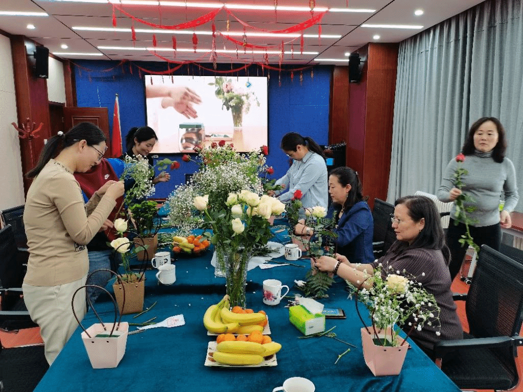 3 8 日下午,为迎接第 111 三八国际劳动妇女节,民族学人类学学院女教职工们通过视频教程学习插花活动,共庆美好节日。
