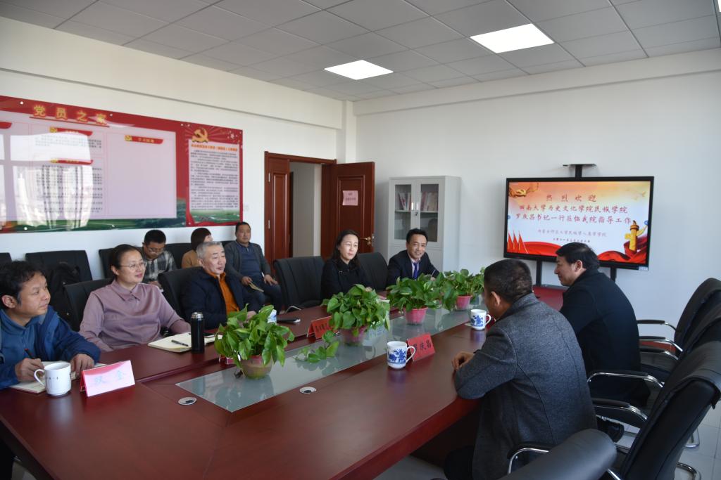 3月22日下午,西南大学历史文化学院民族学院罗庆昌书记、田阡教授一行应邀来bat365考察指导,并在bat365田楼611党建活动室举行座谈会。bat365参加座谈会的有:党总支书记包凤兰、院长乌日陶克套胡、副书记副院长阿荣、副院长满达以及总支委员王瑞军、总支委员杨冰华、教工支部书记双金、行政支部书记包双成、学生支部书记朱苏道等。
