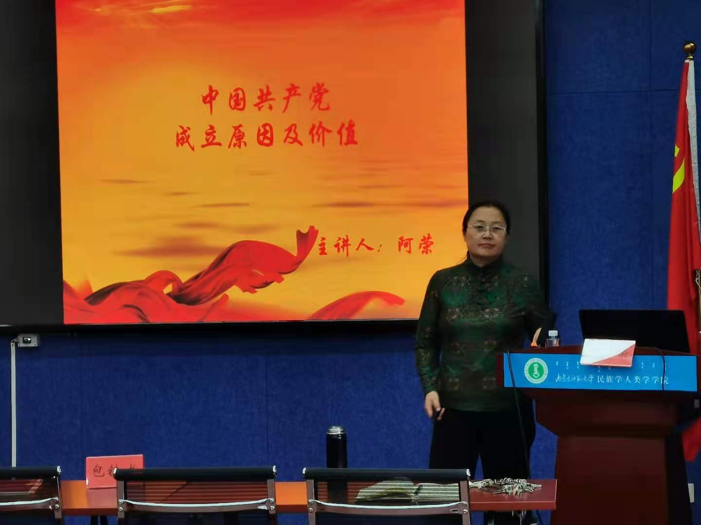 阿书记主要从中国共产党成立原因、中国共产党成立价值两个方面做了讲授。首先,阿书记罗列了学界有关中国共产党成立原因的相关讨论;其次,重点讲授了日本学者石川祯浩《中国共产党成立史》的相关论述,指出中国共产党的成立需要从东亚共产主义运动的宽阔视野来考察。关于中国共产党成立的价值,阿书记从开天辟地的大事件、中国人民谋求国家富强的主心骨、中国命运改变的关键点、是世界史上的大事件四个方面展开讲述。