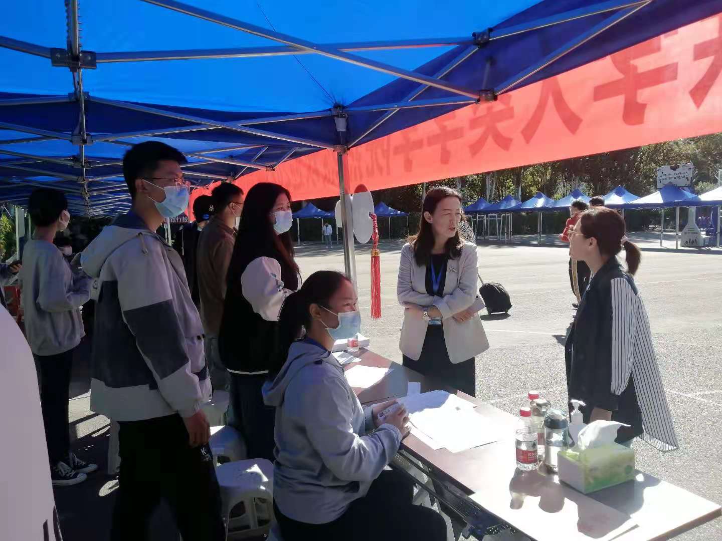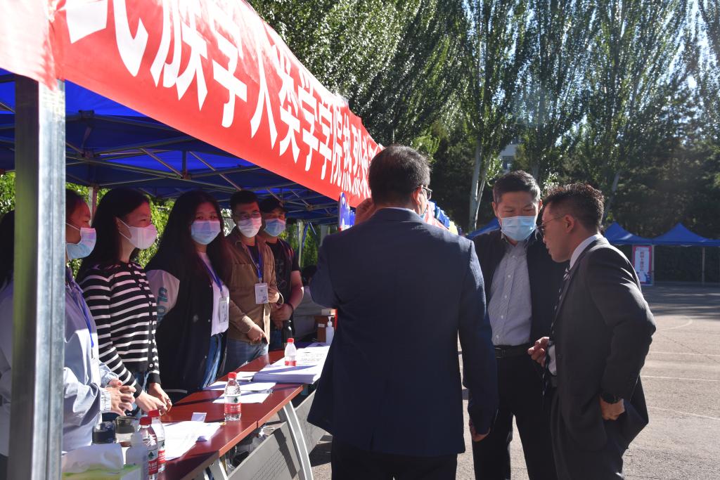 学校以及学院的领导们亲临迎新现场指导新生接待工作,询问新生报到相关情况,勉励同学们入学后好好学习,用优良的成绩回报家长和社会。