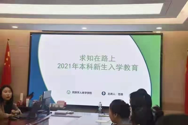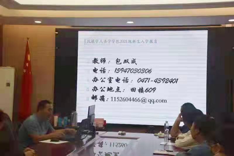 与此同时,由教学秘书范尊主讲的“求知在路上—专业设置,选课攻略”选课概况介绍在赛罕校区田楼607会议室举行。2021级民族学专业全体本科生参加了本次入学教育。下午3点在盛乐校区223教室为2021级社会工作专业本科生进行了入学教育。范老师指出,我校的课程选择丰富多样,选择选修课时要以兴趣为主,多方面、多途径地提升自己的能力,充分发挥自己的特长。