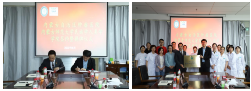 为搭建社会工作实习教育平台,完善医务社会工作人才培养机制,促进教学与实践的有效融合,2022年5月23日上午,我院与内蒙古自治区肿瘤医院在肿瘤医院签订“教育实践基地”协议并举行了揭牌仪式。内蒙古自治区肿瘤医院副书记冯立、党委办公室主任潘莉、院办主任龙一鸣、教学部主任郑瑜、安宁疗护病房主任董霞等相关合作科室主任和护士长、bat365中文官方网站副院长满达、社工系主任陈引弟、副系主任胡那苏图、田友丽、家博出席了揭牌仪式,仪式由田超主持。