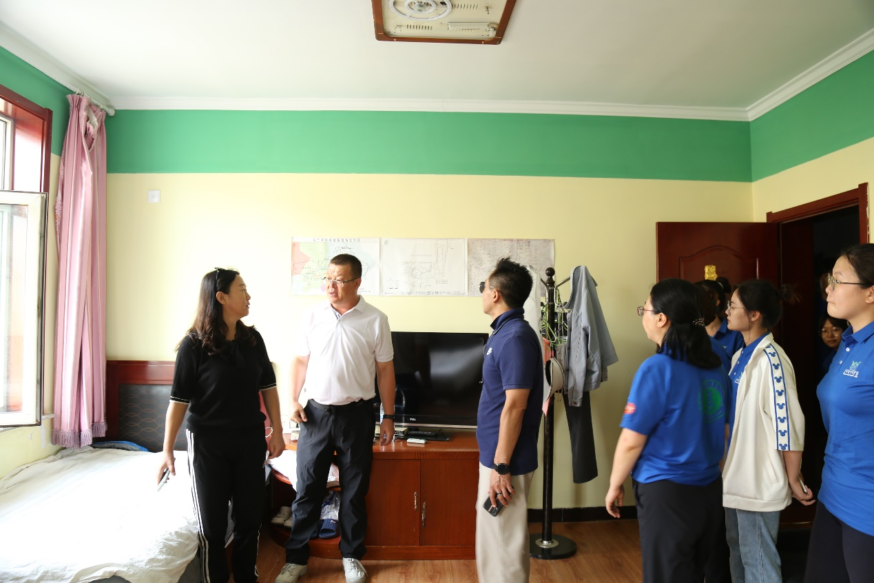 包书记一行首先来到同学们住宿的鼎盛宾馆,走进了师生宿舍,表扬了同学们干净整洁的生活环境,询问了同学们在田野调查中的收获与困难。