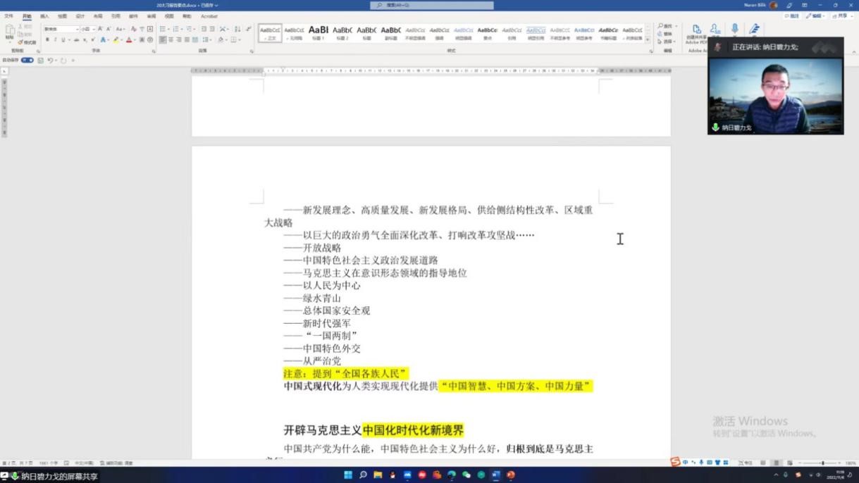 纳日碧力戈教授首先强调了二十大报告的引用规范和标题中的两个关键词,再从四个伟大精神入手,系统解读了二十大报告的主题和报告的逻辑框架。纳教授结合民族学学科和马克思经典著作,对报告中的新提法、理论框架结构和重点内容等进行了详细而全面的解读。并强调博士生要认真学习党的二十大报告和习近平新时代中国特色社会主义思想,坚持好、运用好贯穿其中的立场观点方法。