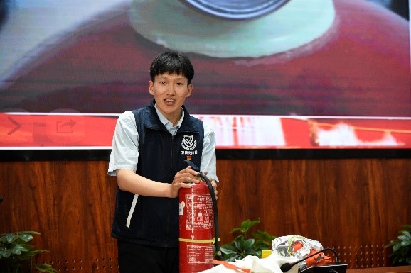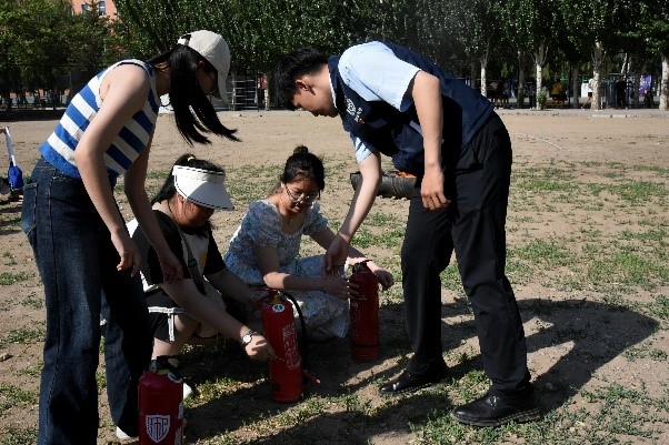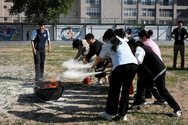 一件件消防安全装备、一条条规范救援程序、一次次无畏救援冒险的经历,都让我们对消防工作有了更直接更深刻的认识。在教官的带领下,我们前往室外进行消防安全实操演练,学习使用干粉灭火器,切实增强了师生安全防火意识和自防自救的能力。