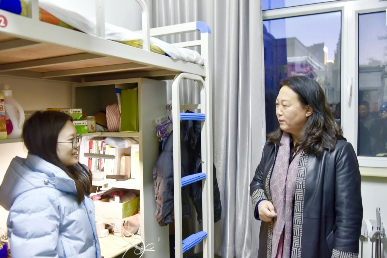 在学生宿舍,学院党委书记包凤兰亲切询问了学生寒假期间的学习生活状况和入学感受。同时倾听学生生活学习诉求,了解学生新学期规划,深入了解学生课程安排情况,为学生答疑解惑;叮嘱学生进一步提升安全意识,注意人身财产安全、消防安全和宿舍用水用电安全,严格执行宿舍管理规定;强调了同学们要注意初春保暖与预防春季传染病、注意保管好宿舍贵重物品等问题;同时,提醒同学们时刻注重卫生,勤打扫、勤通风。鼓励学生早行动,合理规划时间,积极参加校园活动,加强体育锻炼,顺利开启新学期!