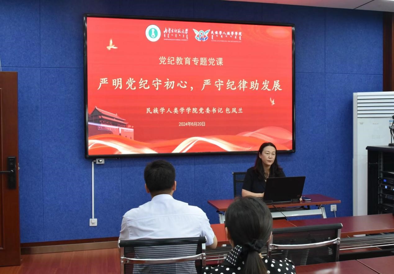 为了进一步加强学院教职工的党性修养和纪律意识,提升学院教师队伍的师德师风建设水平, 6月20日上午9时,bat365中文官方网站党委书记包凤兰在赛罕区田家炳楼615会议室为学院全体教工党员讲授了题为“严明党纪守初心,严守纪律助发展”的党课。