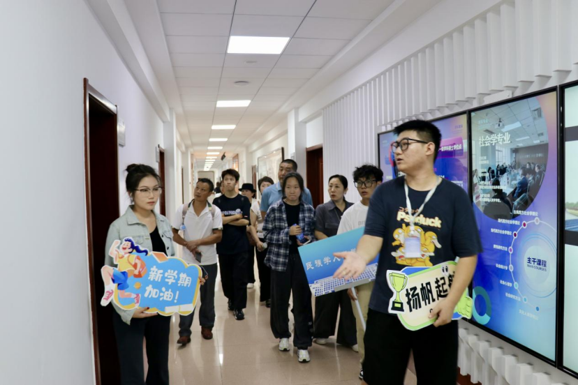 暖心餐后,在新生班主任、辅导员和学生干部的带领下,家长们和新生分成三组,先后参观了学校的校园环境、学院的办公场所和学习环境,使家长们对新生未来学习、生活的环境有了更直观的了解,对孩子们的未来充满了信心,同时也是新生更快地适应并融入校园生活。