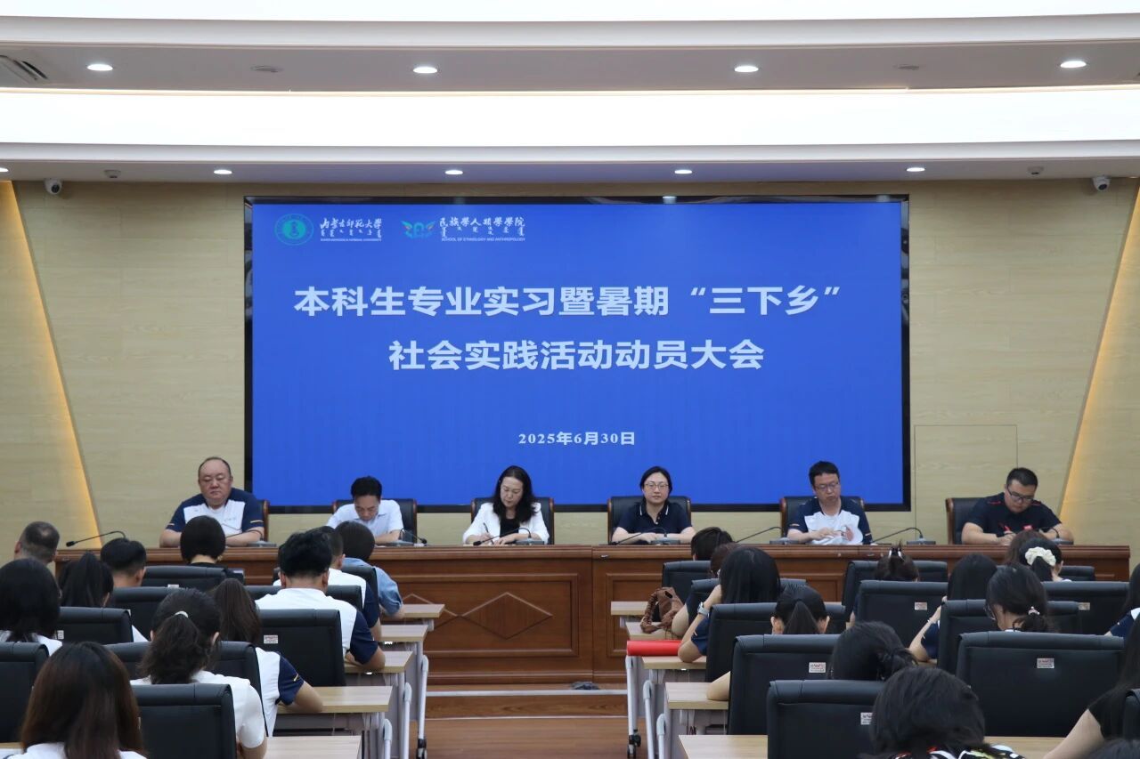 2025年6月30日上午9时,bat365中文官方网站本科生专业实习暨暑期“三下乡”社会实践活动动员大会在勤政楼研究生院会议室召开。学院党委书记包凤兰、副书记副院长陆一琼、副院长满达、团总支书记姜鑫、全体带队教师以及2023级民族学、社会工作专业全体学生齐聚一堂,共同为即将启程的暑期社会实践之旅凝聚力量、注入活力。动员大会由副院长满达主持。