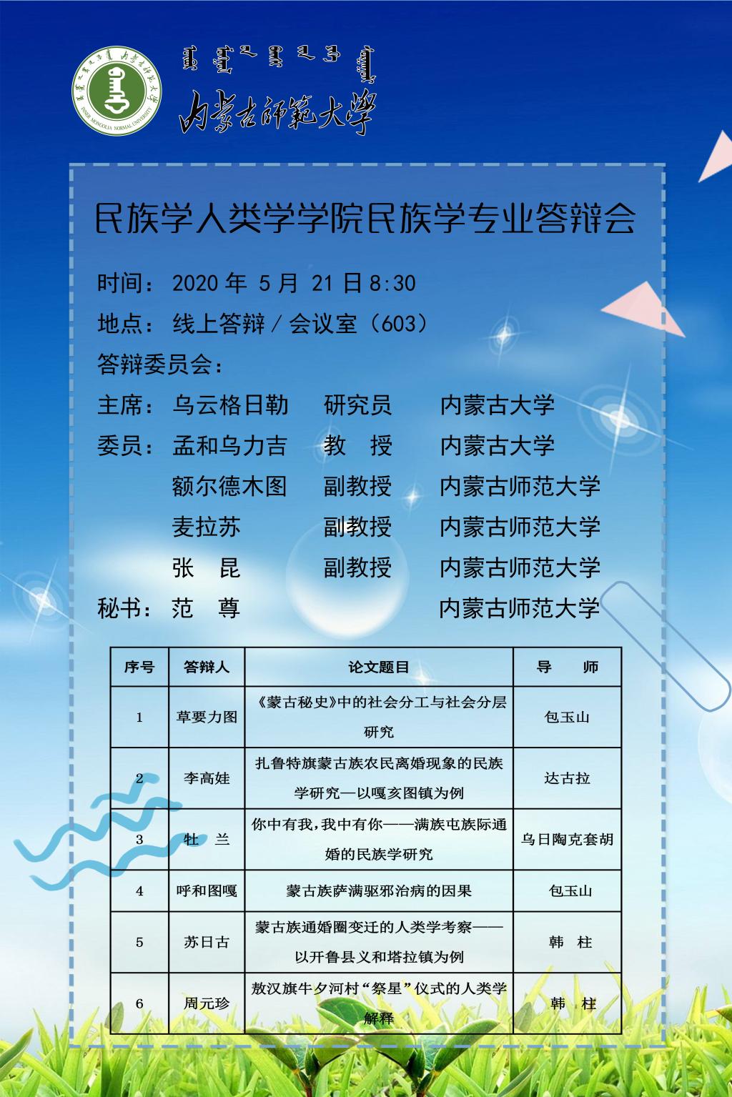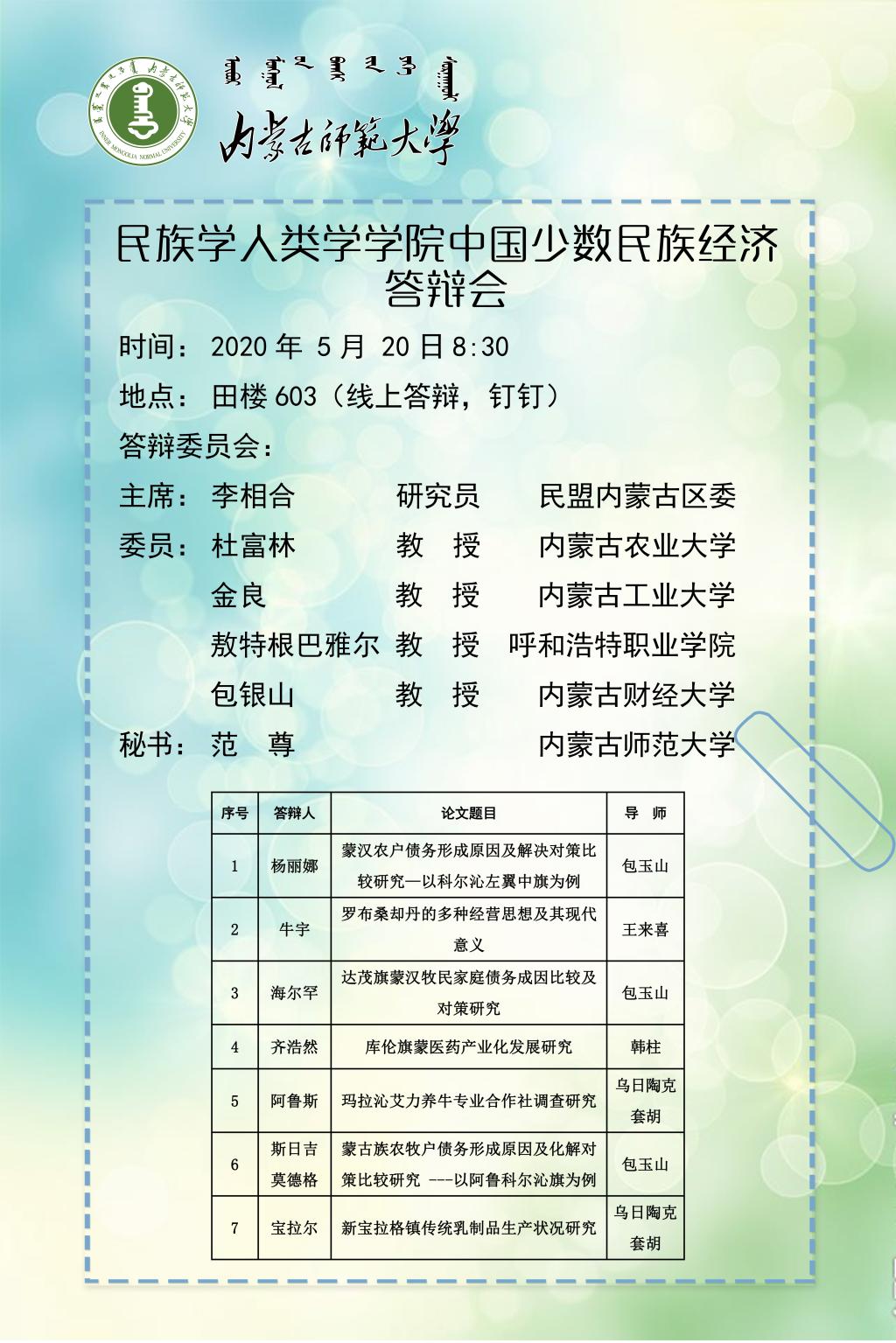 关于2020届中国少数民族经济、民族学专业硕士研究生毕业论文答辩的通知