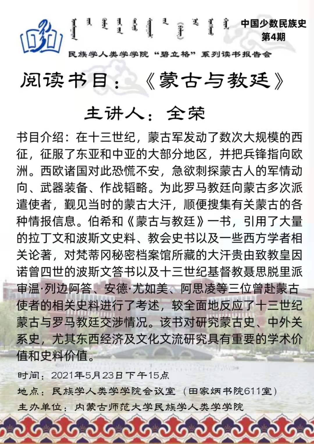 “碧立格”系列读书会中国少数民族史第4期预告