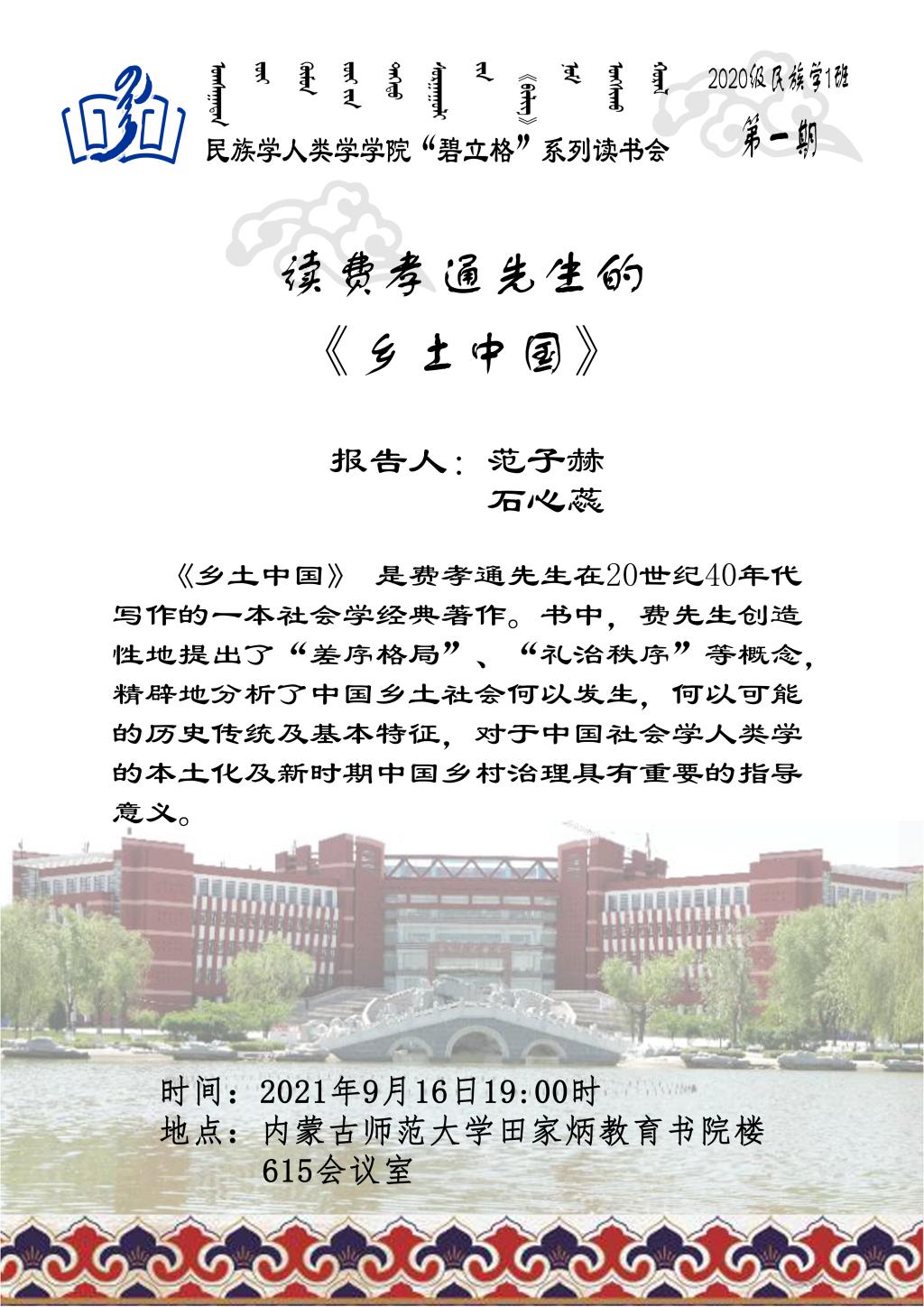 “碧立格”系列读书会民族学本科生1班 第1期预告