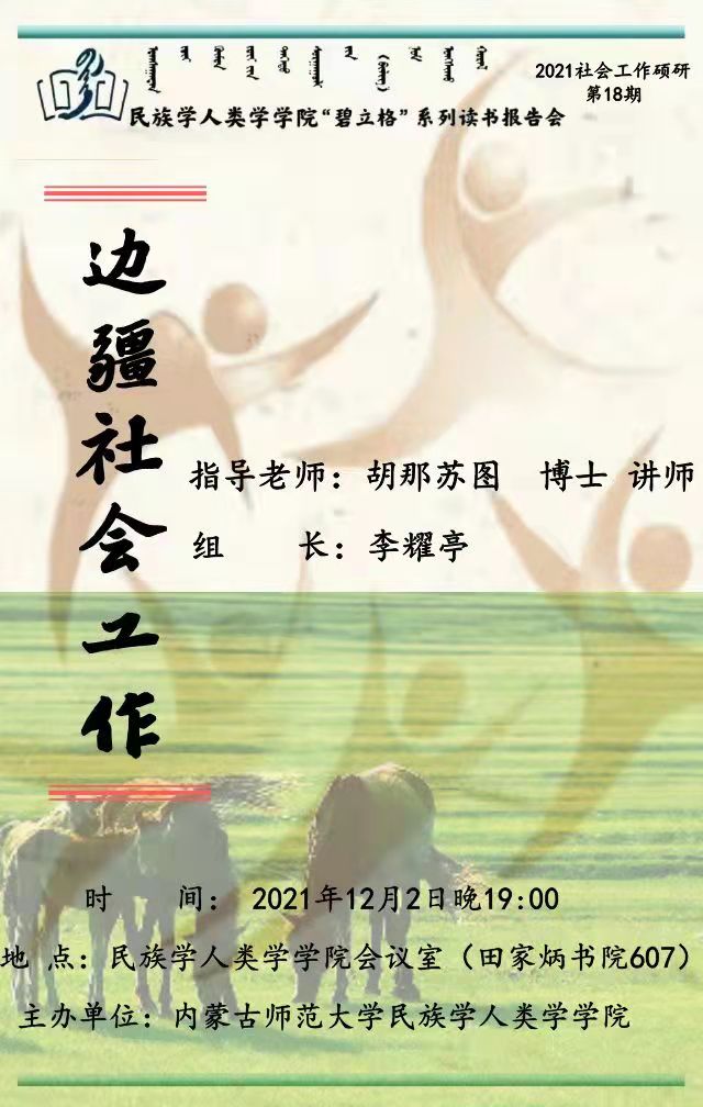 “碧立格”系列读书会2021级社会工作专硕第18期预告
