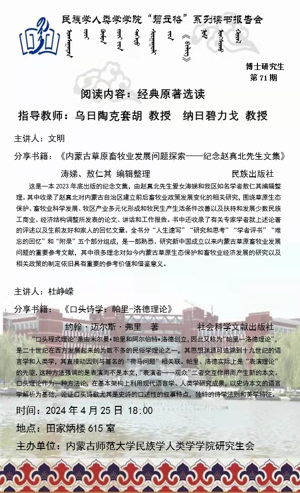 bat365中文官方网站“碧立格”系列读书报告会预告博士研究生第71期