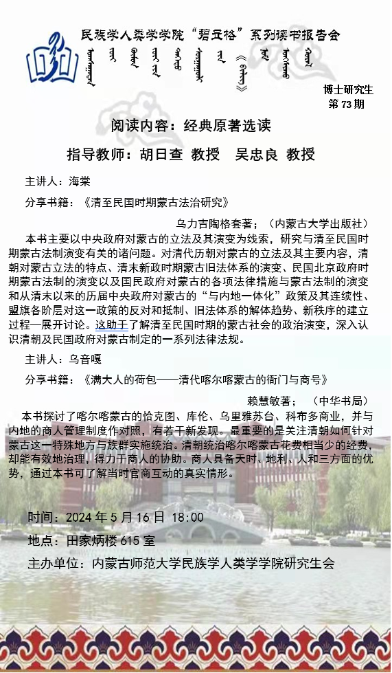 bat365中文官方网站“碧立格”系列读书报告会预告博士研究生第73期
