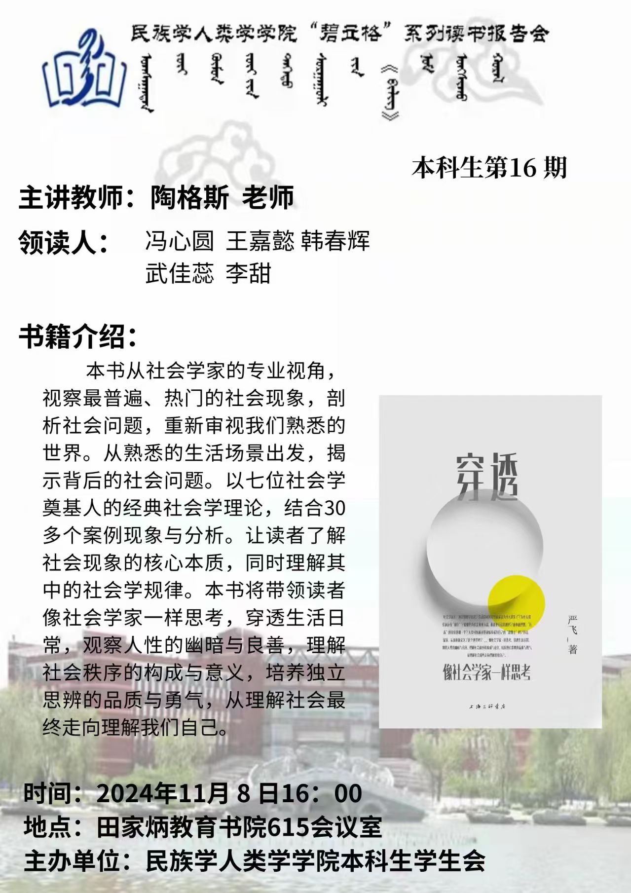 bat365中文官方网站“碧立格”系列读书报告会预告 本科生第16期
