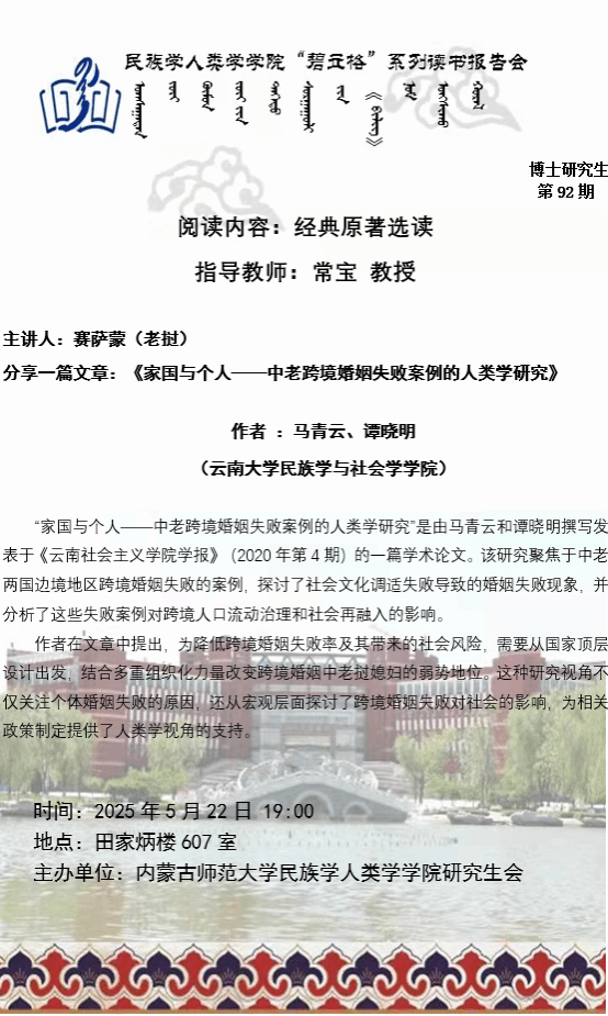 bat365中文官方网站“碧立格”系列读书报告会预告博士研究生第93期