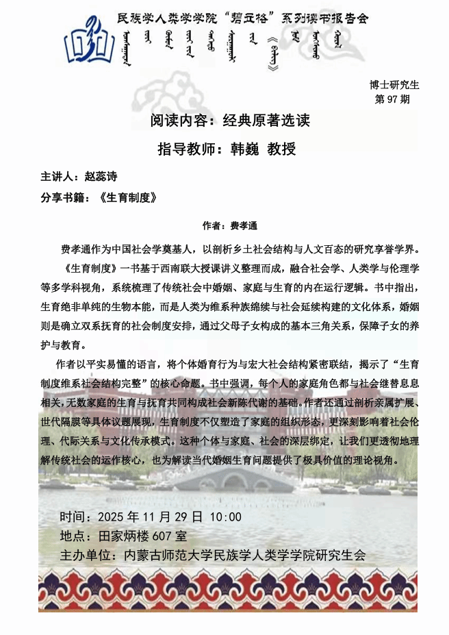 bat365中文官方网站“碧立格”系列读书报告会预告博士研究生第97期