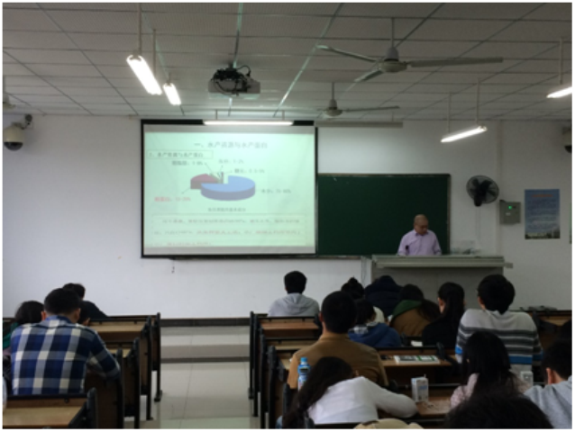 2016年1月15日-1月19日,上海交通大学食品科学与工程系史贤明教授、广东海洋大学章超桦教授、中国水产科学研究院南海水产研究所李来好研究员应邀来pg国际为pg国际学生讲授《食品安全学》课程,该课程与食品质量与安全专业相关课程紧密相关。授课开始,5教203教室座无虚席,学生与老师互动积极,课堂氛围活跃。