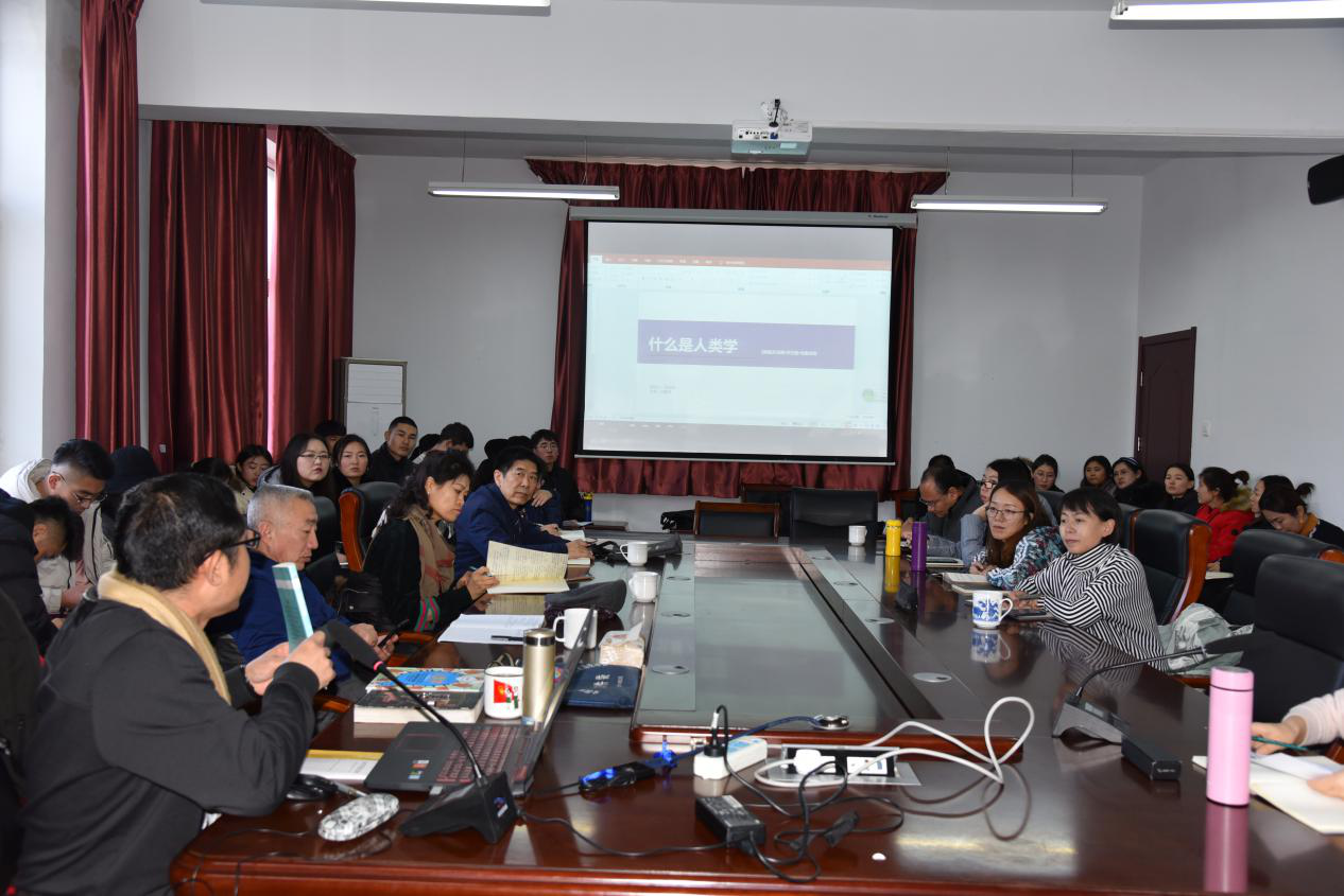 为了提高bat365师生对人类学的认识,增强专业学术感,bat365中文官方网站于2019年12月29日下午3点在科研楼301举行第八期读书会,民族学博士苏玉明老师为大家领读了挪威人类学家埃里克森的专著《什么是人类学》一书。本次读书会由博士生李丽萍主持,院长乌日陶克套胡老师、丁龙召老师、塔娜老师、普华才让老师、张径真老师、李玉峰老师、杨冰华老师、包双成老师以及博士生、硕士生、本科生共53人参加了本次读书会。