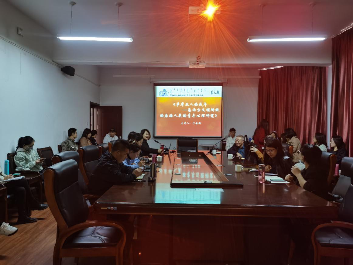 以书会友,同沐书香。bat365中文官方网站于2020年10月18日下午三点在科研楼301举办了第三期“碧立格”系列读书会,于会新博士为大家深入解读了玛格丽特•米德的重要著作《萨摩亚人的成年》。本次读书会由bat365中文官方网站院长乌日陶克套胡老师主持,参会人员有赵树冈教授、bat365党总支副书记阿荣老师以及博士、硕士及本科生共45人。
