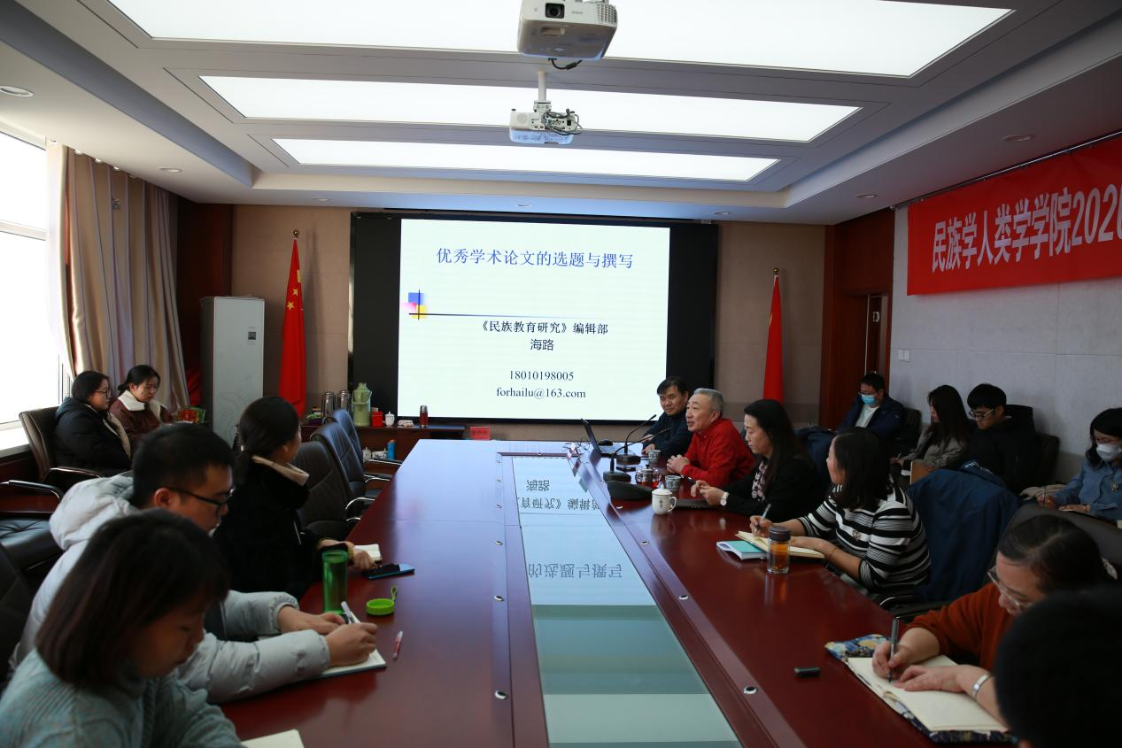 应bat365中文官方网站邀请,2021年12月12日上午9:30,《民族教育研究》编辑部主任、博士生导师海路教授,在田楼607会议室为bat365师生做题为《优秀学术论文的选题与撰写》的学术报告。此次报告由院长乌日陶克套胡教授主持,学院党委书记包凤兰教授及部分师生参加本次报告会。