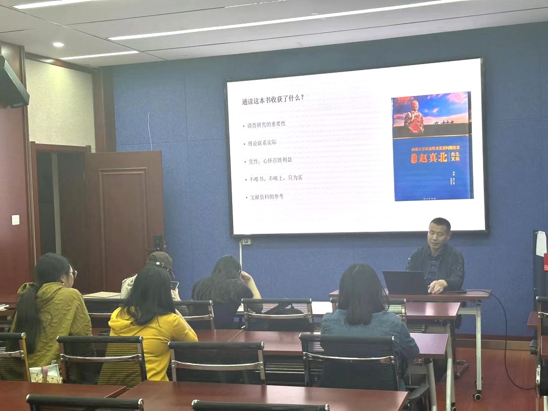 文明同学分享了《内蒙古草原畜牧业发展问题探索——纪念赵真北先生文集》一书,通过《文集》中的具体事例,从四个方面分享赵真北先生重要的学术(实践)贡献,以及其理念对当前草原畜牧业可持续发展的借鉴意义,并推荐了关于草原畜牧业历史、现状和可持续发展的同学们可阅读的相关书籍。