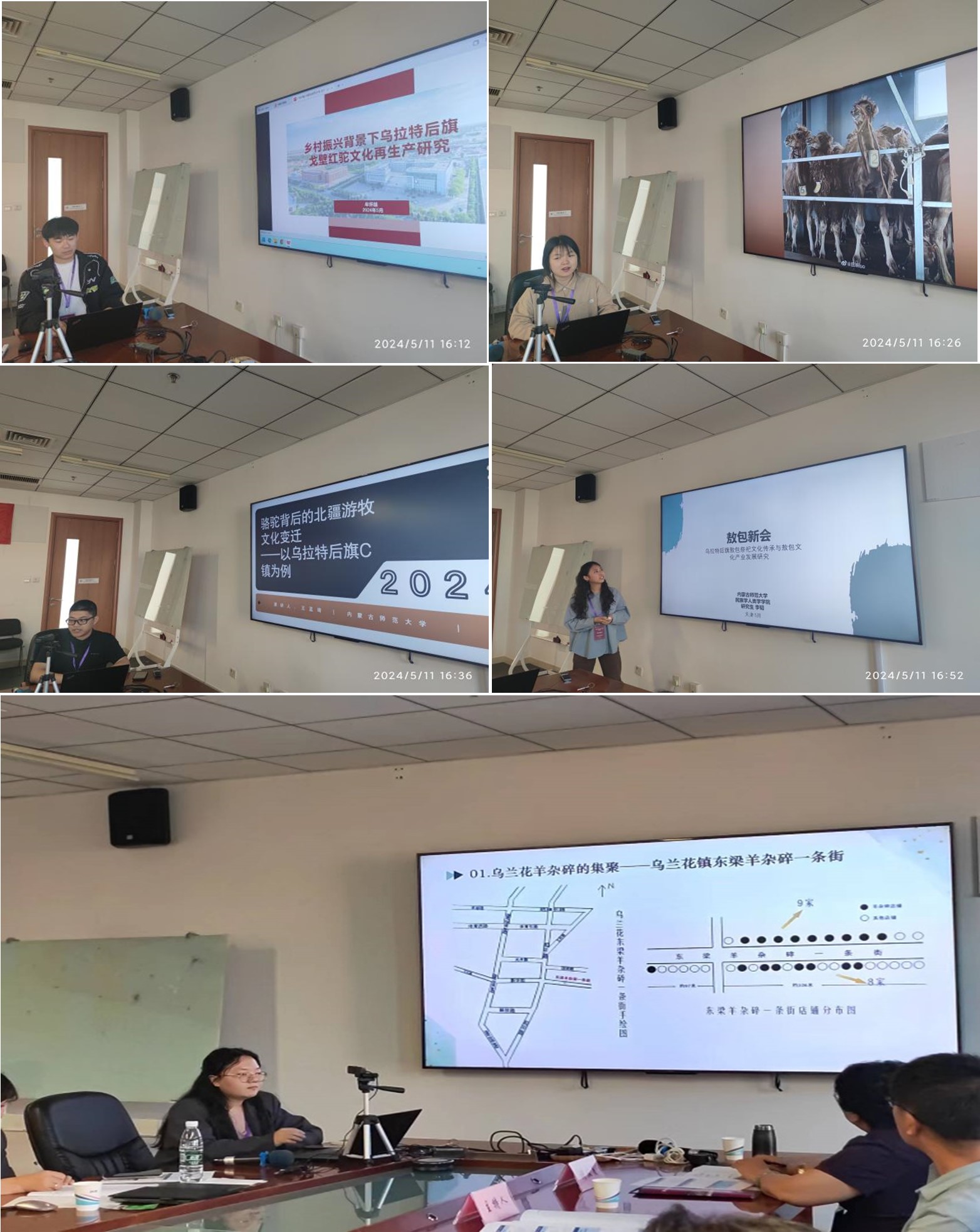 bat365乌日格木乐老师带领牟怀超、张圣杰、王孟琦、李韬、杨淑羽等5名硕士研究生参加会议,分别以“乡村振兴背景下乌拉特后旗戈壁红驼文化再生产研究”、“驼乳策力:乡村振兴背景下乌拉特后旗驼奶产业生产模式探究”、“骆驼背后的北疆游牧文化变迁—以乌拉特后旗c镇为例”、“敖包新会:乌拉特后旗敖包祭祀文化传承与敖包文化产业”、“‘晋风蒙韵’饮食人类学视角下的乌兰花羊杂碎”为题做学术报告,赢得了与会老师们的高度认可,获得了广泛好评。