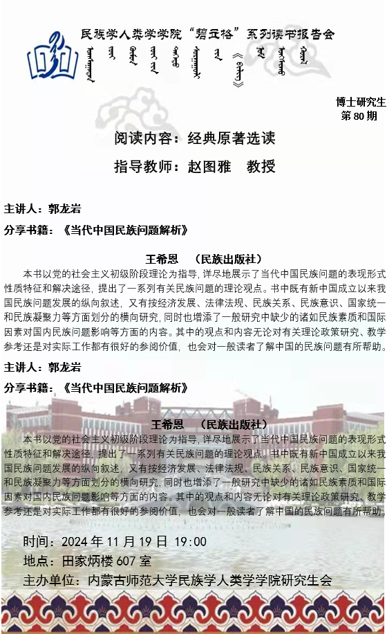 bat365中文官方网站“碧立格”系列读书报告会预告博士研究生第80期