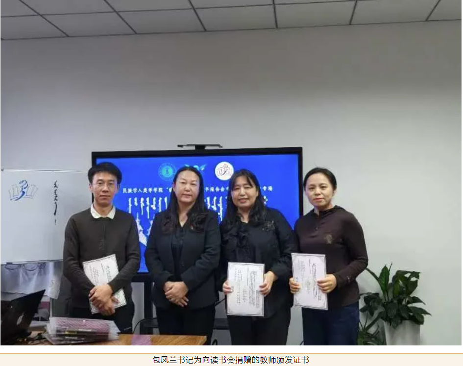 随后,bat365中文官方网站党委书记包凤兰教授特别向此次为读书会捐赠的教师与学生颁发致谢函,并表达了衷心的感谢。书记表示,捐赠者的善举对学院学术氛围的营造和人才培养起到了积极推动作用,要妥善利用捐赠的书籍与基金,让更多学子受益,为教育事业添砖加瓦,同时也肯定了读书会持续开展的努力和意义。最后由中国少数民族史研究中心主任谢咏梅教授对学院一直以来的支持、老师同学们的善举以及每一次认真分享读书心得的同学们一一致以谢意,并希望老师同学们坚持“碧立格”读书会的继续开展,分享更多好书,让读书成为一种习惯。