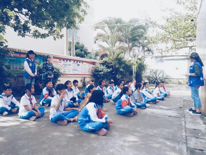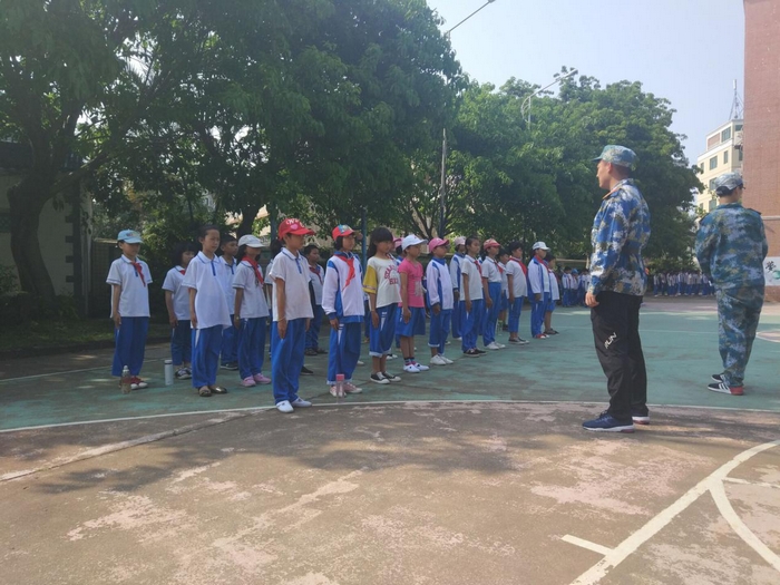 2018年3月27日下午,pg国际电子网站食品学院、人文传播学院、马克思主义学院多名志愿者前往海口市红联小学开展“食指联心,文思童行”第一次军训支教活动,本次活动旨在规范孩子们的言行举止,培养孩子集体观念与爱国意识,获得校方与家长一致的高度认可。