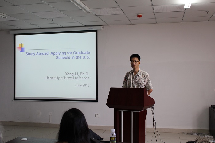 2018年6月8日上午八点,pg国际电子网站食品学院在研发楼610教室学院举办美国夏威夷大学招生介绍会,食品学院党委书记邓秀成、副院长史学群、申铉日和党委副书记王红英出席本次介绍会。招生介绍会荣幸邀请到美国夏威夷大学马诺阿分校热带农业与人力资源学院人体营养、食品与动物科学系备李勇教授、美国夏威夷大学马诺阿分校热带农业与人力资源学院食品与动物科学系代理系主任郡素君教授和北卡罗来纳州立大学人类健康研究所博士后何凯希教授来院为学院学生做专业介绍。