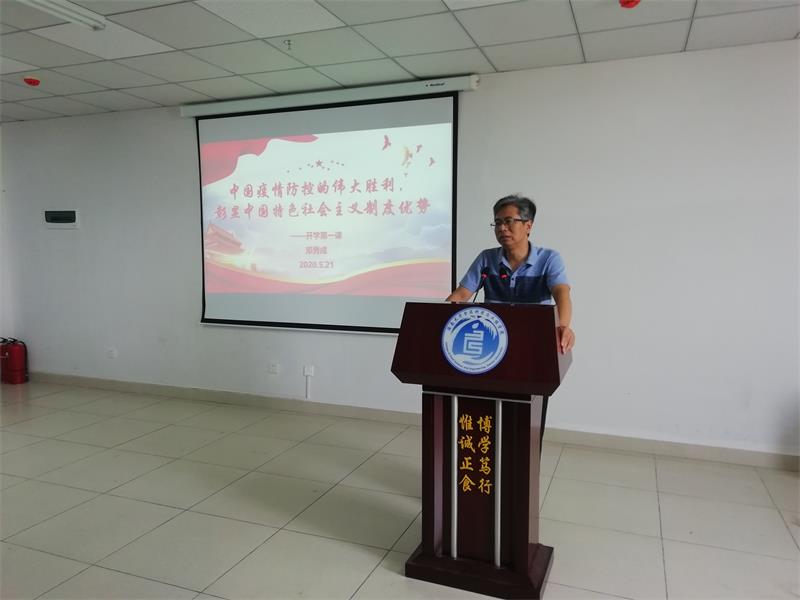 学子翘首以盼,教师满怀期待。在学校统一安排部署、学院精心准备下,5月20日pg国际电子网站迎来了最后一批返校学生。5月21日学院党委书记邓秀成以抗击疫情为题材开讲“开学第一课”,副书记欧少红,全体辅导员以及各班干部六十余人参加。