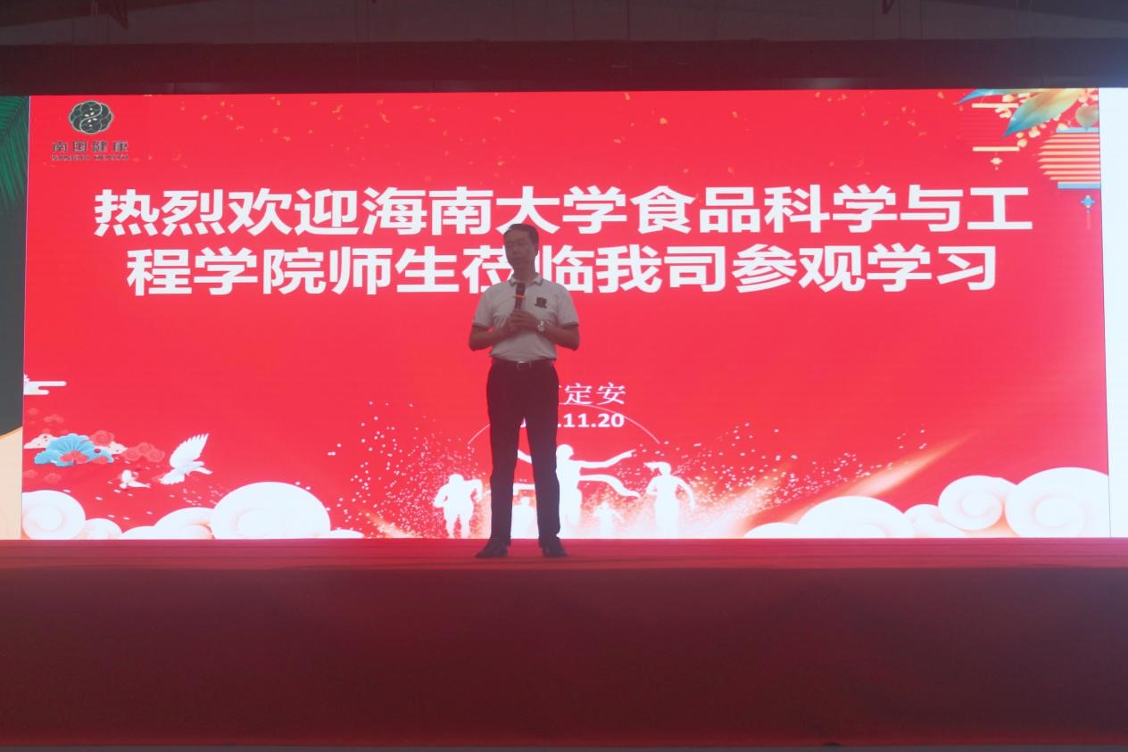 首先南国健康产业园副总经理陈伟斌及南国健康产业公司工作人员对pg国际电子网站全体师生的到访表示热烈欢迎。陈伟斌副总经理向同学们介绍了南国企业的文化、品牌发展和产品种类,让同学们对南国食品有了初步的认识。