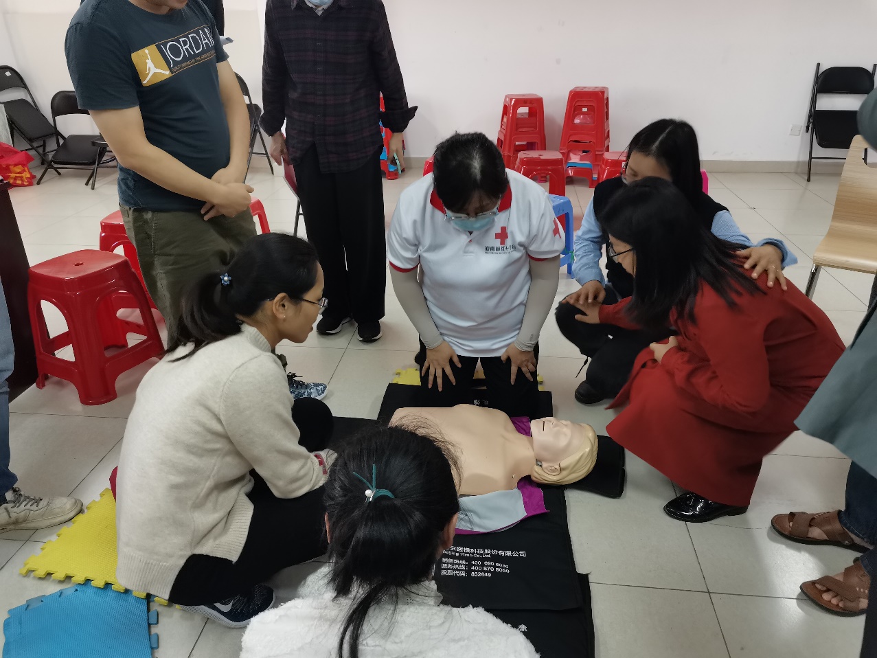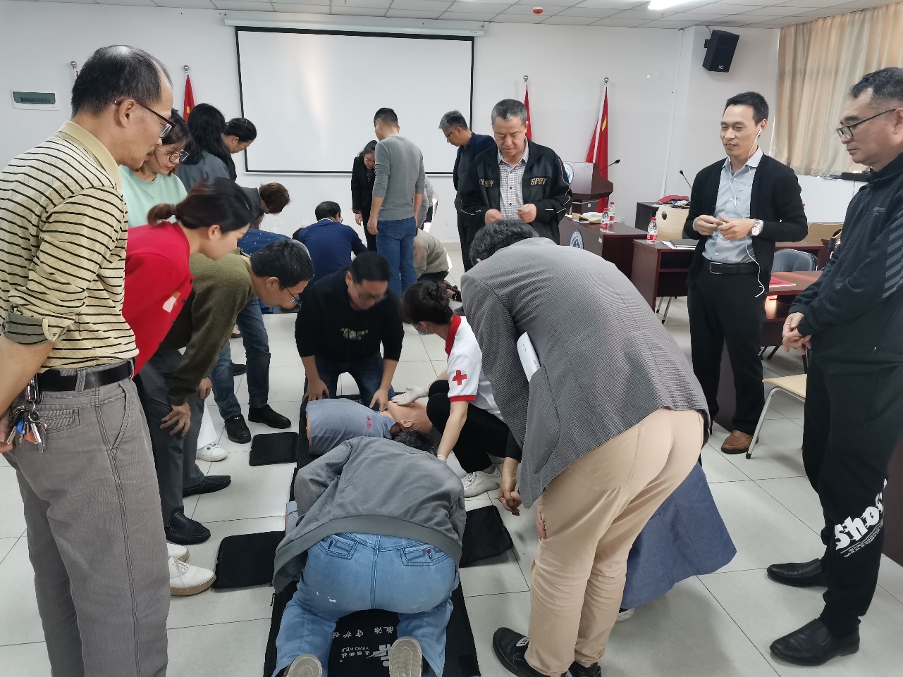 培训课上,医生们通过具体案例、现场演示等方式,详细讲解了心脏骤停的起因、症状、高危人群、应急处置方式等方面的内容。医生们以生动的语言、真实的案例,围绕突发事件,结合日常生活和工作,重点就急救重要性、基础知识、心肺复苏技术、AED的使用方法等方面进行了介绍,尤其对如何在事故发生第一时间采取正确、有效的应急措施,最大限度地在医生和救护人员到来之前协助挽救生命作详尽讲解。培训还进行了现场实操演练,保障每位参训人员都掌握了基本的应急救护和AED操作技能。培训活动受到参训人员热烈欢迎,大家踊跃参加模拟操作。