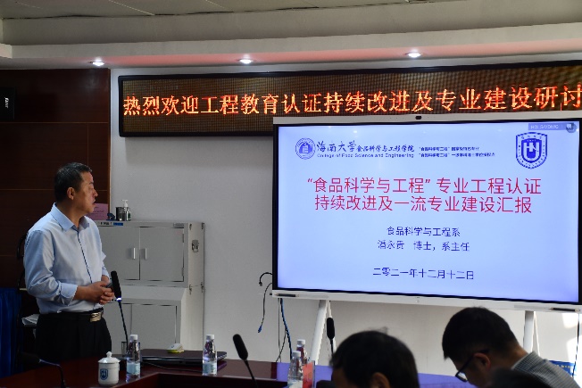 食品科学与工程专业系主任潘永贵作工程教育认证持续改进及一流专业建设汇报,详细介绍了食品科学与工程专业工程认证持续改进情况及存在的问题。食品质量与安全专业系主任云永欢作食品质量与安全专业申报国家一流专业建设汇报。金征宇主任对食品科学与工程专业工程教育认证改进情况及食品质量与安全专业建设进行现场点评,强调工程教育认证的关键是持续改进。副主任刘静波对工程教育认证改进中的问题作了解答并提出建议,指出工程教育认证持续改进需要全体老师参与,对于加快一流专业建设和提高人才培养质量具有重要意义。与会专家分别针对pg国际工程教育认证持续改进和专业建设提出建设性的意见和建议,指出改革教育评价应注重学生能力和素质的培养,促进教研融合。