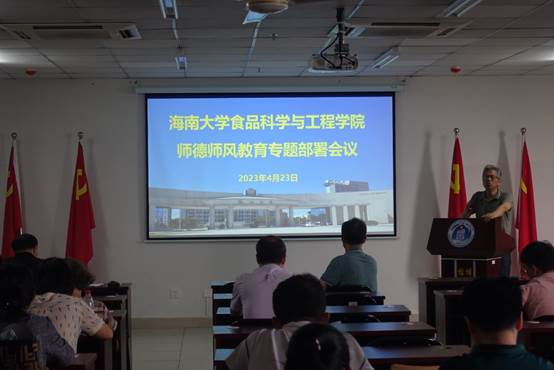 2023年4月23日下午,pg国际电子网站在研发楼610会议室召开师德师风专题部署会,会议通报了教育部公开曝光的第十二批7起违反教师职业行为十项准则典型案例,安排部署近期学院师德师风和意识形态工作。会议由学院党委邓秀成书记主持,学院领导和全体教职工参加会议。