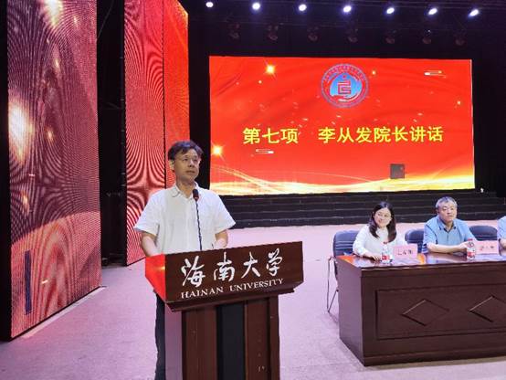 李从发院长在开学典礼上致辞。他首先向新生们介绍了学院的办学历史、学科建设、人才培养、科研成果、师资队伍等情况,他欢迎和鼓励新生积极投身食品这个朝阳产业。李院长强调,“大学是筑梦的地方,依然需要努力和打拼,不奋斗、无青春。大学依然是需要成绩和实力,绝对不是可以躺平的地方”。他深情寄语全体新生,希望他们在校期间积极参加食品创意研发大赛、食品文化节、挑战杯等食品特色活动,发展兴趣,热爱并投身大学生活,追求本心的召唤,铸就无悔的人生。