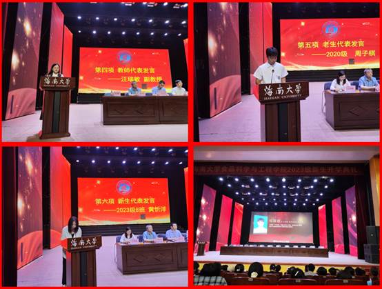 邓秀成书记通过“1个发霉的甜瓜拯救了千万人”的故事、2023年诺贝尔生理学或医学奖得主卡塔琳·卡里科的科研之路、中国知名作家残雪的励志故事等三个故事勉励新生们树立信心、勇于探索、热爱海大、热爱食品。他还列举了多位在就业、考研、联合培养等方面的学院杰出校友事例,希望同学们从现在出发,“路在脚下,未来无限,拼搏奋斗,勇于追梦,善于圆梦,共同续写学院新的辉煌。”