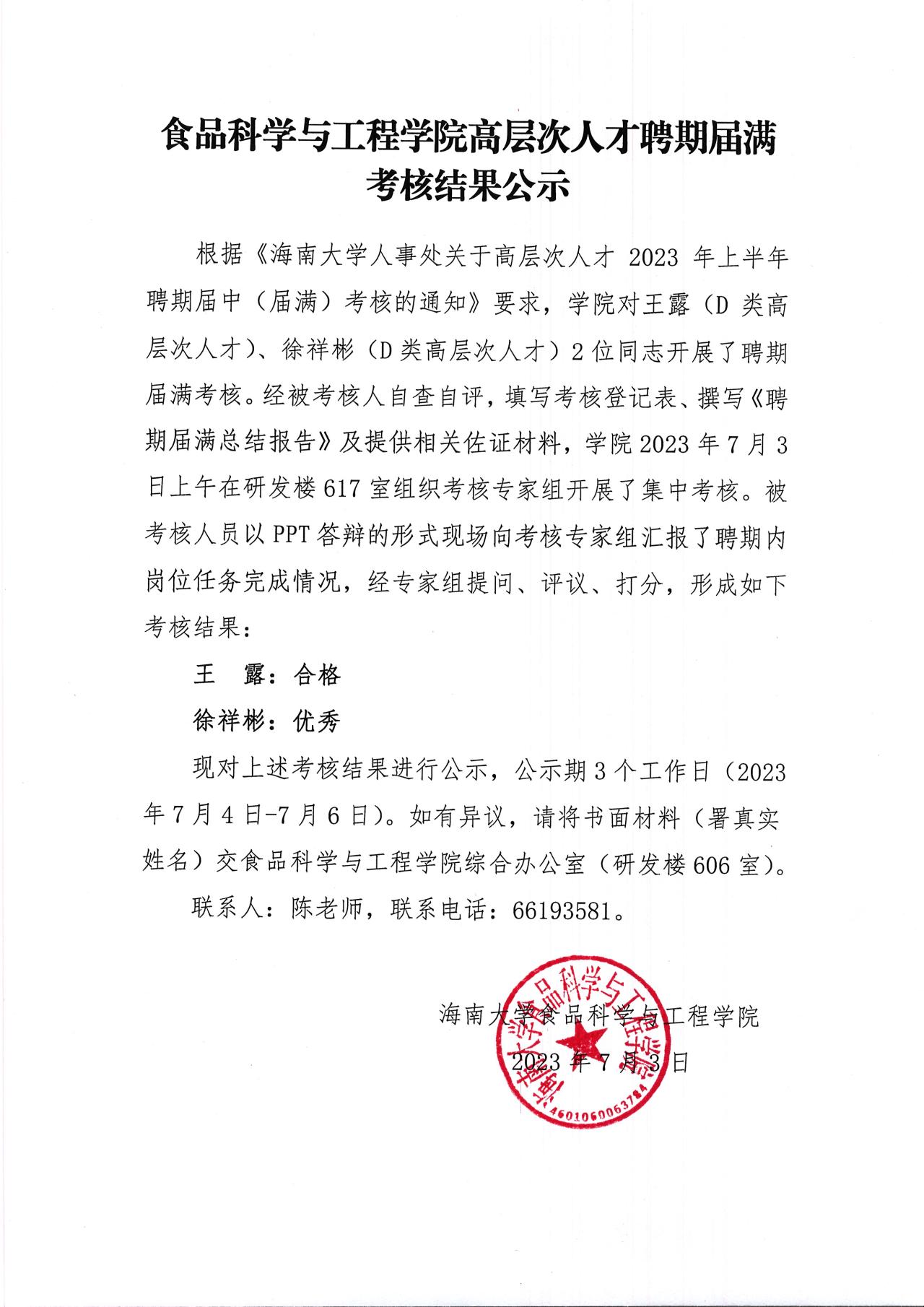 pg国际电子网站高层次人才聘期届满考核结果公示